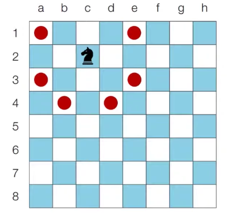 a 부터 h로 표현한다- c2에 있을 때 이동할 수 있는 경우의 수는 6가지이다
