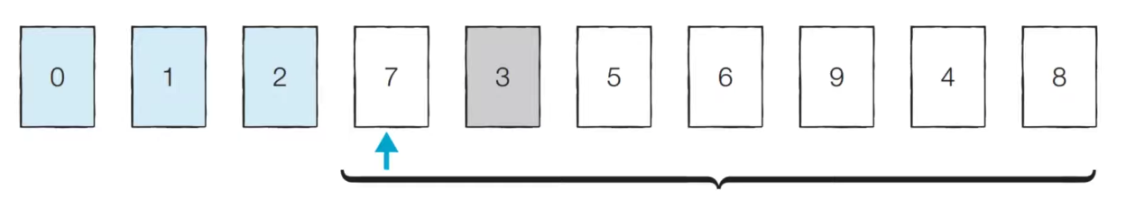 - [Step 3] 처리되지 않은 데이터 중 가장 작은 '3'을 선택해 가장 앞의 '7'과 바꾼다