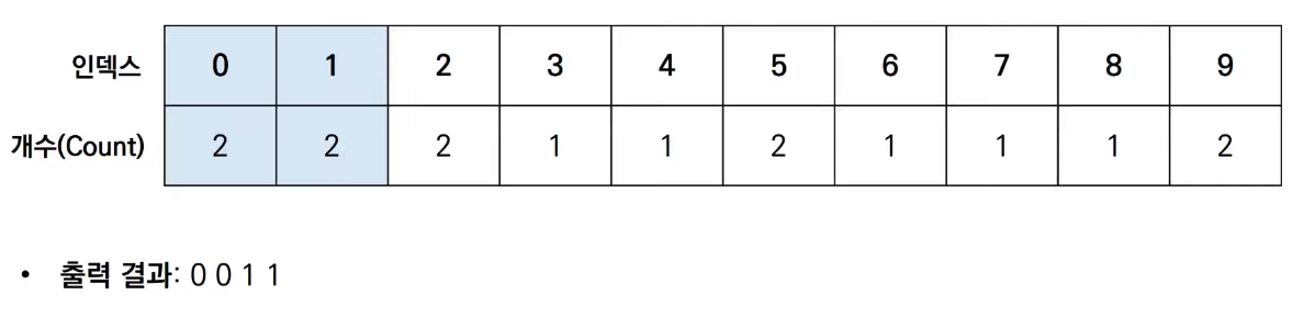 | 계수 정렬 | O(N + K) | O(N + K) | 데이터의 크기가 한정되어 있는 경우에만 사용이 가능하지만 매우 빠르게 동작한다 |
