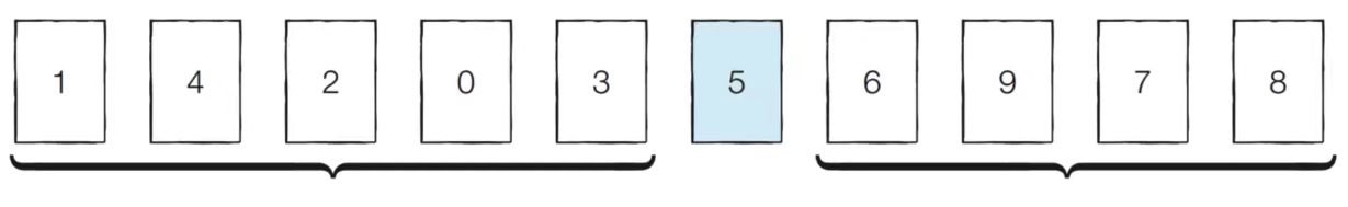 - [분할 완료] 이제 '5'의 왼쪽에 있는 데이터는 모두 5보다 작고, 오른쪽에 있는 데이터는 모두 '5'보다 크다는