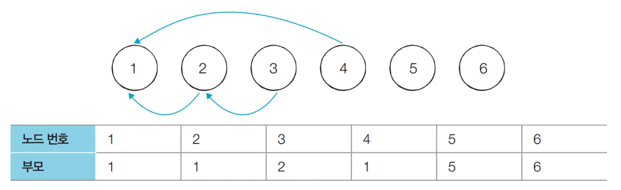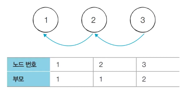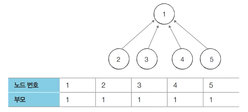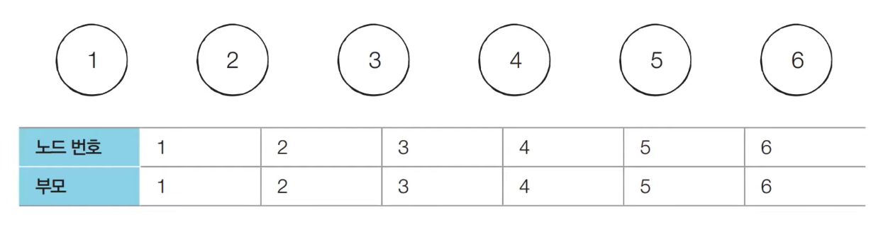 - [초기 단계] 노드의 개수 크기의 부모 테이블을 초기화한다