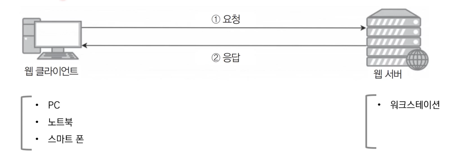 - 클라이언트가 요청(Request)을 보내면 서버가 응답(Response)한다