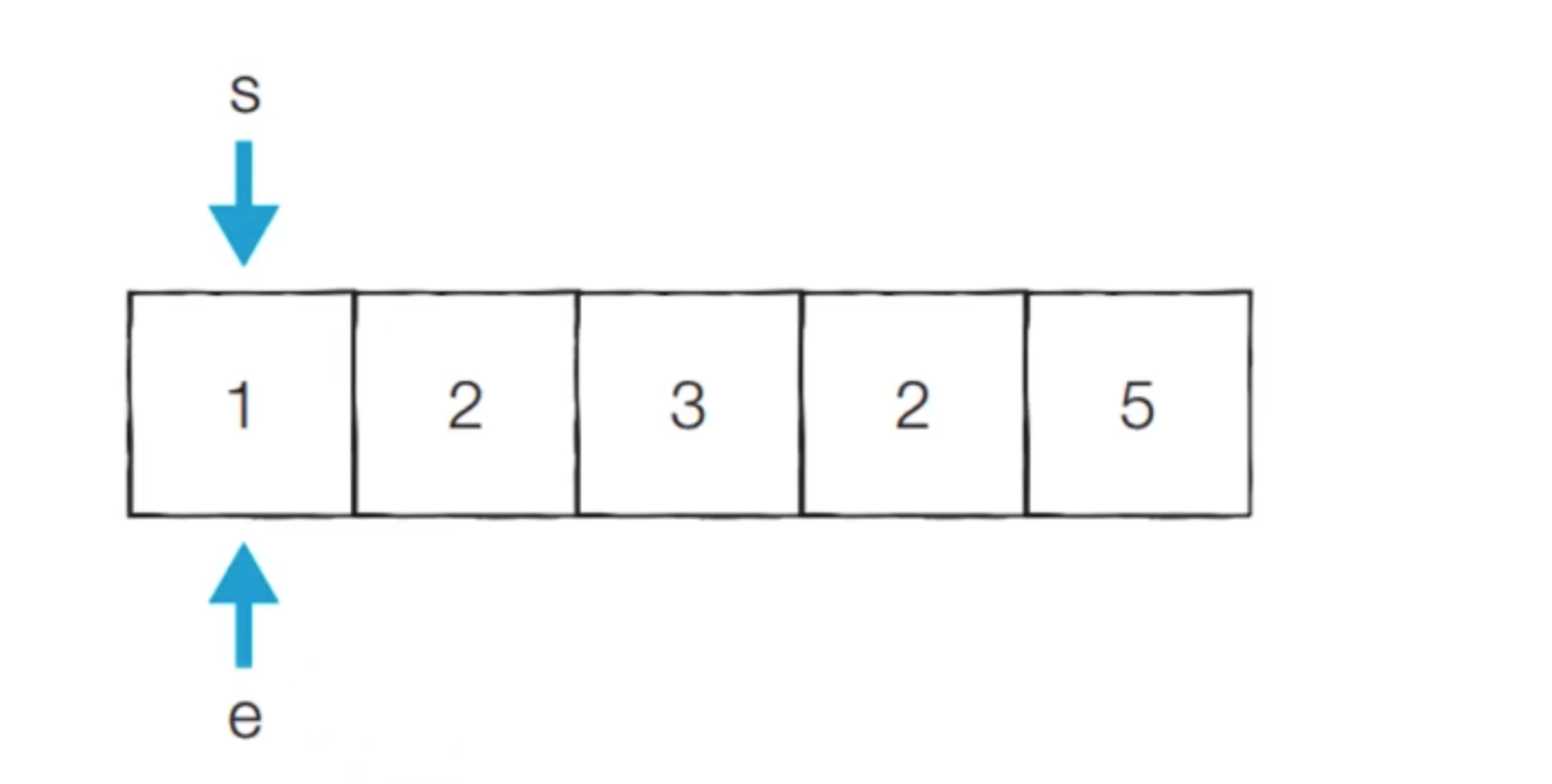 - 시작점과 끝점이 첫번째 원소의 인덱스를 가리키도록 한다.
